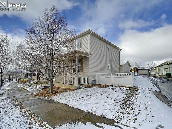 This super clean, single family corner lot home has mountain views and is located only 12 minutes from Ft Carson's Gate 3, 8 minutes to downtown Colorado Springs and just over 2 hours to the nearest ski resort (for those looking to enjoy all Colorado has to offer). Aside from its great location, this home offers move-in-ready amenities like an updated kitchen with stainless steel appliances, 3 bedrooms 2 bathrooms, fenced back yard and and an immaculate detached garage with ample storage to help keep your car warm during cold winter months. The community offers a playgrounds and a dog park just a short stroll away. Most of the furniture can be negotiated with the home; perfect for those who are looking to up-size their current home or moving to the area with few items. Schedule your private tour or view from afar using the attached virtual tour.