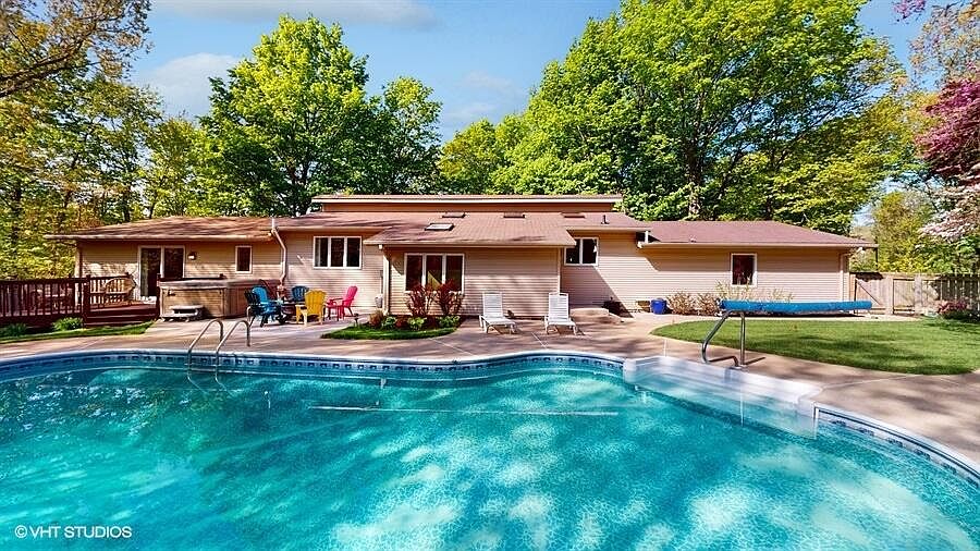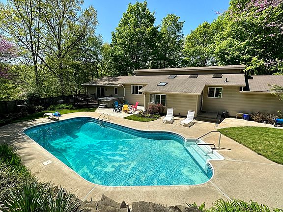 Discover luxury in this contemporary home nestled in the heart of wine country. Experience serenity with woodland views from every room of the open-concept home. Outdoors, a large pool and hot tub await, surrounded by exquisite landscaping. The master suite, complete with a private deck, overlooks this captivating view. Skylights infuse natural light into the kitchen and dining area, complementing the living room with a cozy wood-burning fireplaces. Enjoy the spacious family room in the lower level where you can warm up next to the 2nd wood burning fire place, or relax looking out your sliding glass doors and smelling the fresh air .A spacious deck offers ravine views, while an attached and detached (3 cars total) garages provide ample parking.Your dream home awaits