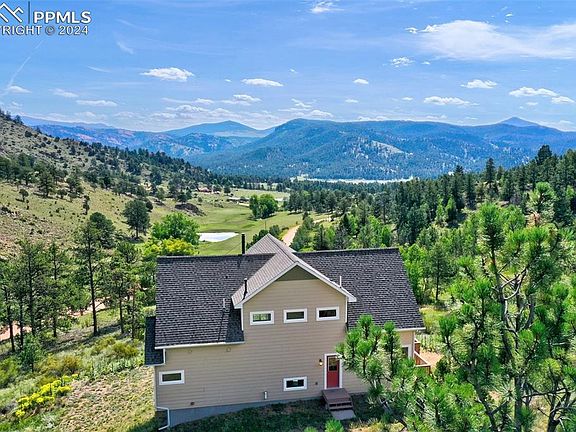 Discover the serene beauty of rural living with this exceptional property located south of the picturesque Florissant, Colorado. Nestled on over 20 acres of pristine land, this home offers a unique blend of privacy and breathtaking natural surroundings, making it an ideal retreat for those seeking tranquility and a connection to nature. As you step inside, you are greeted by a stunning vaulted ceiling that enhances the spaciousness of the living area. A magnificent wall of windows frames the panoramic views of the lush green valley, the majestic Mt. Pisgah, and the iconic peak of Pikes Peak. This remarkable feature not only floods the interior with natural light but also creates a seamless connection between the indoors and the stunning outdoor landscape, allowing you to enjoy the changing seasons from the comfort of your home. The property is across the road from a large ranch, ensuring that your privacy is preserved while still being part of a vibrant rural community. The expansive grounds provide ample opportunities for outdoor activities, whether you wish to hike, explore, or simply relax in the serene environment. The location is also conveniently situated just a short drive from the charming town of Cripple Creek where you can enjoy the local attractions, and around the corner from the private Wrights Reservoir, where you can choose to enjoy recreational activities such as fishing or hiking. This home comes fully furnished and is turn-key ready, allowing you to move in and start enjoying your new lifestyle immediately. The thoughtful design and layout of the home ensure comfort and functionality, making it perfect for both full-time living and as a vacation getaway. Whether you are looking for a peaceful retreat, a place to reconnect with nature, or a family home with ample space to grow, this property offers it all. Don’t miss the opportunity to own a piece of Colorado’s stunning landscape, where you can create lasting memories in a truly remarkable setting.