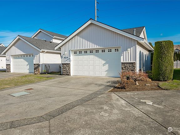 Single-story condo living at its finest! With 0-step entry, you will never have to worry about stairs again. This 3 bd/2ba home is located in one of Lynden's most highly sought-after communities. With its smart design, open concept, and vaulted ceilings, this home lives much larger than its 1308 sq ft. Upon entry, you are met by 2 bedrooms and a full bath. Next, you are greeted by a light & bright kitchen and dining space with a breakfast bar, pantry, and ample cabinet/counter space. The living room's gas fireplace gives a warm ambiance and will heat the entire home. Just off of the living room is the primary bedroom & bath with a spacious walk-in closet. HOA maintains the yard, lg 2-car garage, A/C, new roof and community clubhouse.
