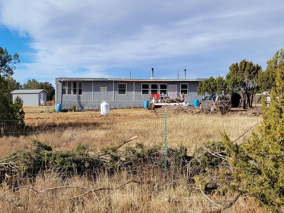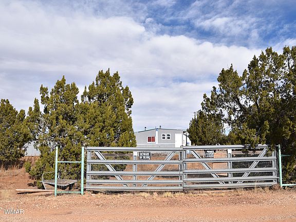 This nice sized home is situated on a large treed lot in a quiet area on a nicely maintained dirt road. There are 2 woodstoves installed in the home, along with a furnace and a wall panel heater to keep you warm and cozy. The 5 bedrooms offer plenty of options, use as bedrooms, office/den space, or even extra living space as 2 bedrooms have their own outside entrances. The fully fenced lot has 3 large gates providing easy access for your animals and toys. There are 2 well built storage sheds and several other small sheet metal outbuildings that will stay with the property. Water is delivered, seller recently installed a new 2500 gallon water storage tank, with pressure tank and pump. The solar panels, 2 batteries, and the inverter installed inside the home are seller owned and will convey as well. The driveway and parking area are nicely cindered to help with the rain and snow. Located about 20 minutes from both Taylor and Show Low, this home is not too far from all the amenities and recreational opportunities that come with living in the White Mountains of Arizona. This property has a lot to offer. Some furnishings convey with sale. Must see to appreciate. This is a cash only sale.