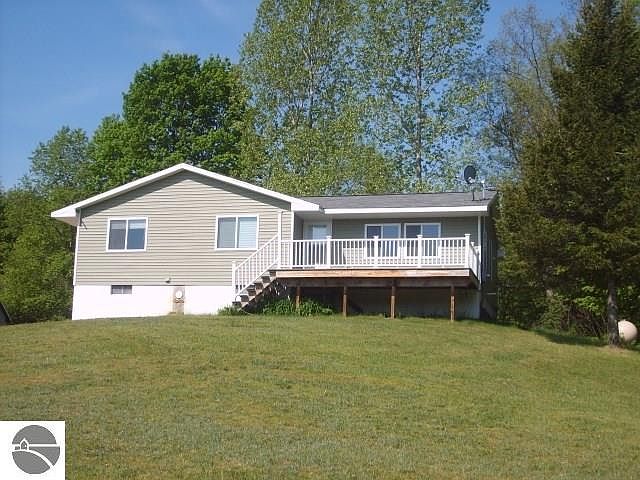 Stylish recently and totally remodeled Raised Ranch with partially finished walk out lower level on rolling 2.5 acre country side parcel in great location between Bellaire and Torch Lake. Newer mechanicals including furnace and septic field, windows, siding, decking and railing with flooring and interior paint just done within last couple of months. Partially finished lower level offers itself for possible 5th BR and plumbed for full size bathroom. Backyard and front porch newer vinyl decking. Great country living in spectacular location.