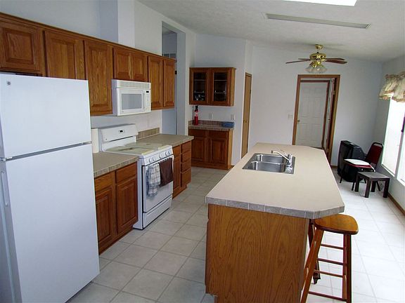 Affordable home ownership with 1680 sq ft! Split bedroom plan. Master has large walk in closet & private bath with double vanity, whirlpool tub, & separate shower. Both baths have skylights to enjoy the natural light. Large kitchen with island featuring the sink, dishwasher, & breakfast bar. The living room includes a cozy wood burning fireplace and flows with the formal dining space. Ceiling fans are in all rooms, and all walls are drywall. The garage is finished & heated. The heater will stay. All appliances stay including the washer & dryer. Within the Four Seasons Park & easy access to highways, dining, shopping, & medical facilities. Enjoy the Four Seasons community pool & activities. Make this YOUR new home today!