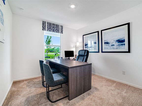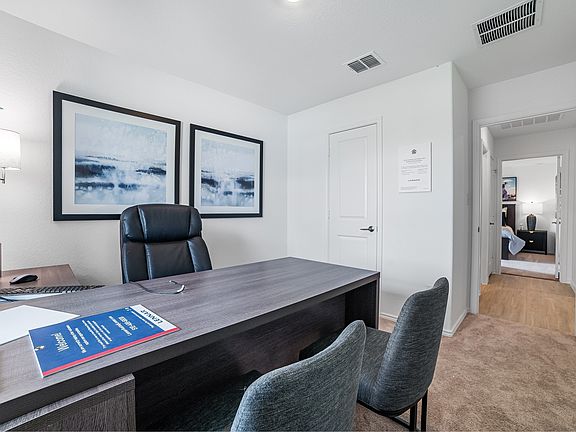 LENNAR - Carrell Hills - Oxford Floorplan - This new single-story design makes smart use of the space available. At the front are all three secondary bedrooms arranged near a convenient full-sized bathroom. Down the foyer is a modern layout connecting a peninsula-style kitchen made for inspired meals, an intimate dining area and a family room ideal for gatherings. Tucked in a quiet corner is the owner’s suite with an attached bathroom and walk-in closet.
