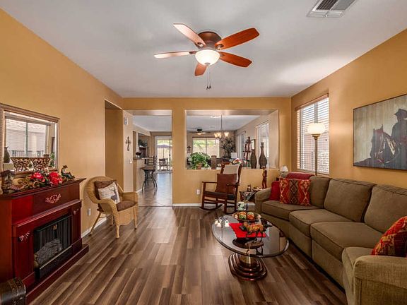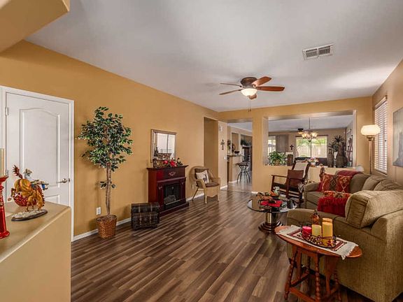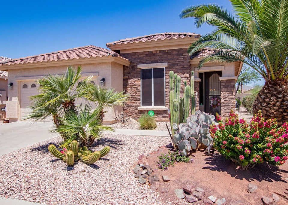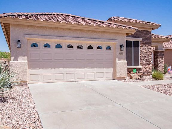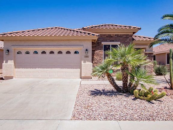 Welcome home to your 2BD/2BA oasis in the Sundance Active Adult Community! You will love the pride in ownership from the moment you enter and the numerous upgrades such as oversized tile; custom paint; custom blinds; new laminate flooring and bedroom carpet; upgraded cabinetry; new double ovens, disposal, refrigerator; granite countertops; water softener loop; and security screen door. The extended garage boasts cabinetry & epoxied floor. You will enjoy energy savings with ceiling fans, solar screens, and new hot water heater. Step onto your extended patio and enjoy your beautiful landscaping, pavers, and Arizona's weather. Close proximity to shopping and freeway access. Some furnishings available on separate bill of sale. Call for your showing today!