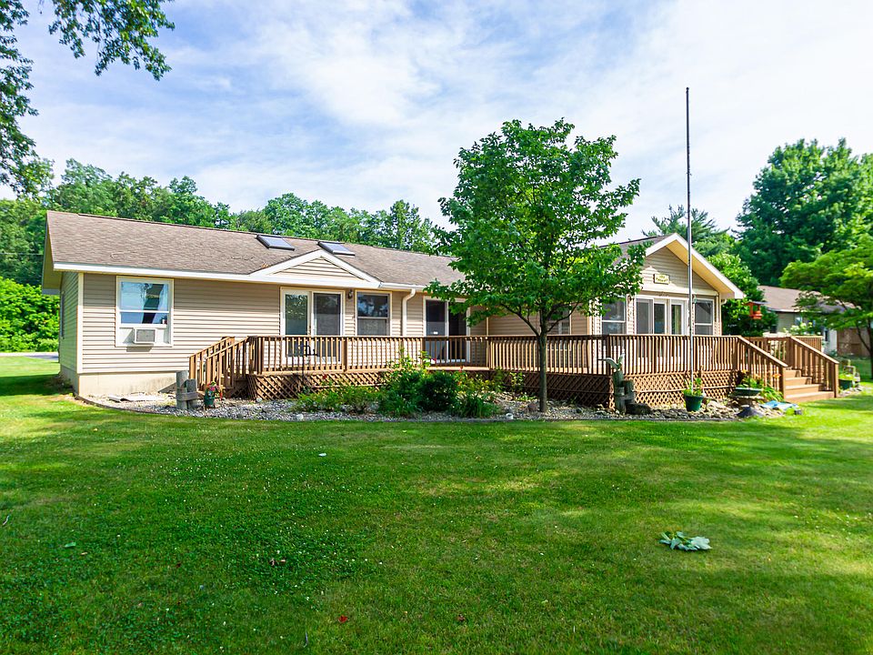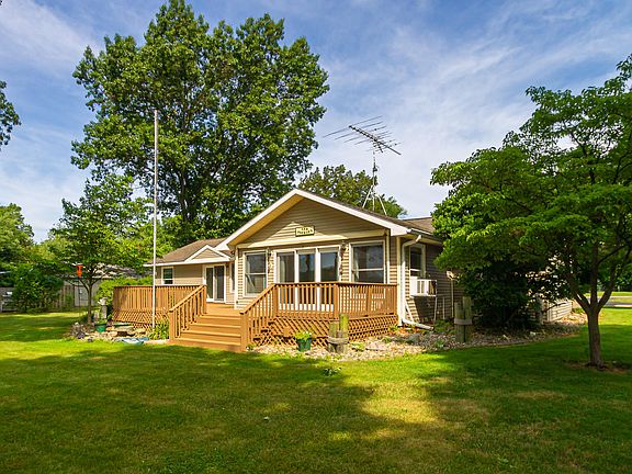 Discover the St. Joseph River with 150' of beautiful water-frontage! This 4 bed(poss5), 2 full bath, ranch home is sure to please. Not to mention the 3 car garage/pole barn with a workshop, concrete floor, electric and heat! A large carport with concrete and electric hookup once serviced the RV. And an additional 1.88 acres of woods and trails across the street is included in the sale. This home is fantastic with everything on the main level and a total of 1,980 sqft of finished living space. Gorgeous views from every room, cathedral ceilings and great family rooms and game/office areas. A large kitchen with tons of counter and cabinet space. Setup for seperate living areas so everyone can have their own space. This property provides serenity and peace. 2 additional electric hookups