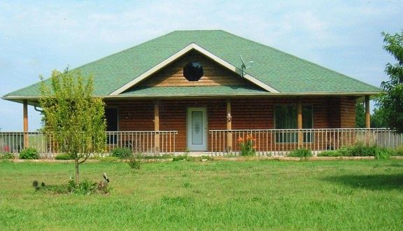 Nice log siding home with frontage on Old 65 just outside Omaha. Large covered porch with deck & railing all around home. Stone fireplace, open floor plan in living & kitchen. Large master bedroom w/whirlpool tub in master bath. 40'x 48' metal shop bldg w/ rock floor & roll up doors. Adjoining land available. Concrete slab for large garage.