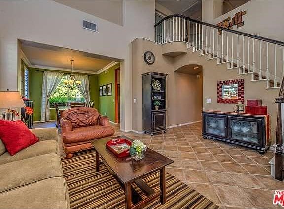The California dream ? family style! Set on a roomy corner lot, this stunning Pacific Hills home has been lovingly enhanced. This property has NO MELLO-ROOS TAX! Its open feeling starts in the two-story entry. Diagonal tile flooring, plantation shutters, surround sound enhance the living area. The family room flows into a kitchen with eat-in bar, S/S appliances and breakfast nook. A bedroom suite, full bath with tub and a roomy office with built-ins complete this level. Upstairs, French doors in the master suite open to a balcony overlooking the lush landscape. There are 2 more bedrooms and one Jack & Jill bath and a laundry room. The spacious back yard surrounds a large covered patio and BBQ island with fridge and sink, gas fire pit, surround sound, and roomy in-ground PebbleTech spa with rock waterfall. A zip line, swing set, and trampoline keep kids entertained. Drought tolerant landscaping is luxurious and low maintenance while reducing water usage by 40 %. Come see it in person!