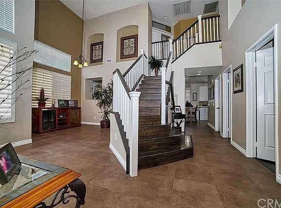 BEAUTIFUL WILDROSE RANCH HOME IN SOUTH CORONA>>> This turnkey move-in ready home features 2,233 sq ft of living space and approx. 6,534 sq ft lot, built in 1994. This home features 4~bedrooms, 3~bathrooms (one bedroom w/full bath located downstairs). Living room, dinning room, family room with cozy fireplace. Plantation shutters throughout, new AC unit was installed few months ago. This turnkey home is bright and airy with an open floor plan and vaulted ceilings. As you walk in you will immediately appreciate the oversized and beautiful ceramic tile flooring throughout the downstairs, all the bedrooms in the upstairs have carpet. Kitchen has granite countertops and backsplash with white upgraded cabinets throughout. The master suite has double door entry, double sinks and a large walk-in closet his and hers. This home is steps away from CA Distinguished School "Temescal Canyon Elementary" and it's conveniently located close to fwys, shopping, parks, walking trails and the popular DOS LAGOS shopping center. LOW TAX RATE~LOW HOA~NO MELLO ROOS~$65mo HOA, tax rate approximately 1.1%. HURRY THIS HOME WILL GO FAST!