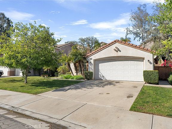 Welcome to this beautifully upgraded single-story home at the end of a quiet cul-de-sac in Wildrose Ranch. The open floor plan features high ceilings, abundant natural light, waterproof engineered wood vinyl flooring, dimmable LED lighting, modern baseboards, and an inviting kitchen with stainless-steel appliances and a large breakfast bar—perfect for entertaining. Two bedrooms have custom closet organizers and recessed lighting. The private master suite includes vaulted ceilings, a walk-in closet, large windows, and a stylish en-suite bathroom with a double sink vanity. Smart home features include a water softener, Ring doorbell, front door keypad, and digital thermostat. Enjoy a year-old, efficient A/C unit. The spacious backyard has an extended wrap-around patio, ideal for creating your own outdoor retreat. Walk to award-winning Temescal Valley Elementary. Close to schools, parks, shopping, and freeway access. No Mello Roos and low HOA fees. Move-in ready!