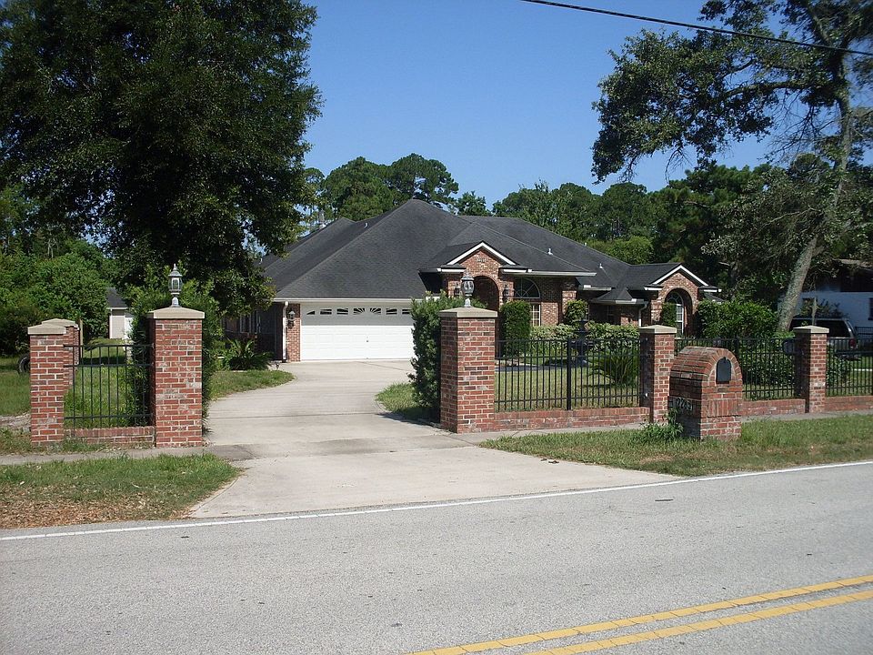 Single Family Home for sale by owner in Jacksonville, FL 32246. 2582 sq. ft brick home on 1.52 acre 2 bed 2 1/2 bath 440 sq ft game room with wet bar, ice maker and frig. built in 2001. seperate dining. screened lanai and heated pool, with self cleaning fearures, outside kitchen. seperate 24x30 workshop. 50x100 fish pond, and retention. matching brick and alumiuum fence on front and 100 ft down both sides. balance of property fenced and cross fenced with 4ft chain link fence. privacey fences on both sides of property for pool. circle drive in front with concrete drive to workshop. deep well with irrigation system. house is on city water, with softner and 100 gal water heater. storm water drain system going into pond. fenced garden.underground electrial with 400 amp.service. split a.c. systems. Interior Amenties. architectural detail. gas stove top on center island, soaring ceilings, wood floors, kitchenaid appliances, and all kohler fixtures. many many upgrades. gas fireplace, and stove is supplied by 300 gal