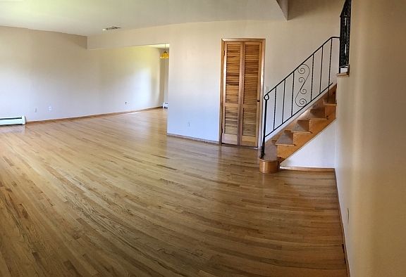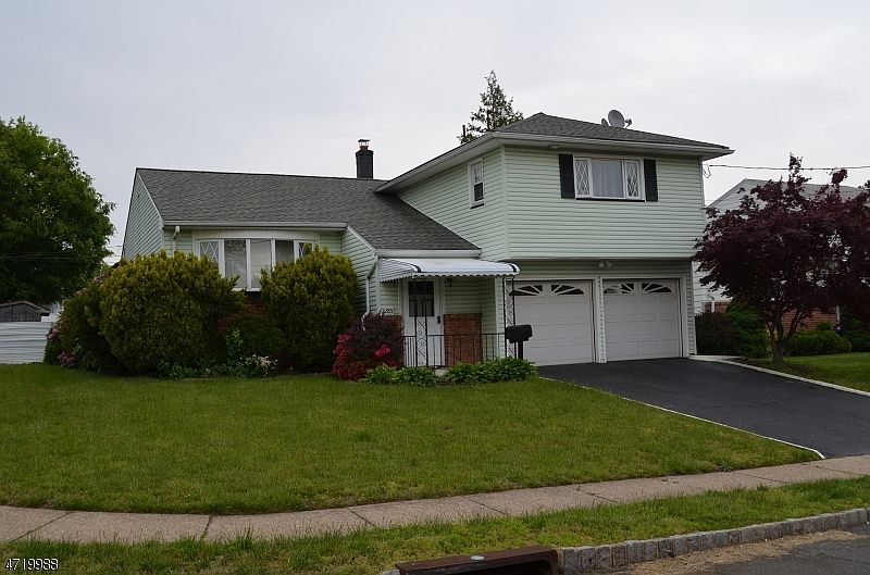 New Central AC. 3 BR, 2 1/2 Bath Split Level on corner lot with Eat-in Kitchen. Living Room and Formal Dining Room with Hardwood Floors, oversized Family Room with sliders to patio and 2 car garage. Quiet Street. Large fenced in yard on corner lot. Master bedroom with bath. Bedrooms and upstairs hall have hardwood floors. New carpet in FR. Great location! Close to NYC Transportation, shopping, houses of Worship and Schools. New DW and Dryer. Motivated Seller.