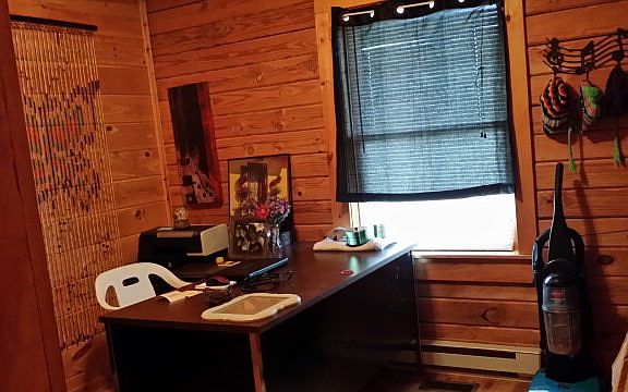 Partial unfinished basement with washer and dryer hook up. Could be 4th bedroom. Large fireplace in living room.
