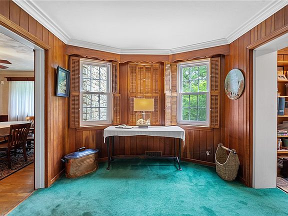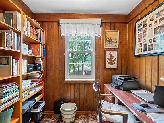 This gorgeous home set back on nearly 2 wooded, park-like acres is an entertainer & nature lover's dream come true. Combining both a stately awe & cozy cottage warmth, this home is as beautiful as she is unique. The cherry lined LR is extra-large yet cozy & features a decorative FP that give it a warm & elegant feel with access to the home office & formal DR. The galley kitchen features butcher block counters, & cabinetry in abundance. The kitchen is a home chef's delight & offers eat-in space & access to the rear porch & yard. The main flr is completed by the inclusion of a BR and half bath. Upstairs, are 2 nicely appointed BR's with hw flrs & a hallway lined with built-ins. And the owner's ensuite is truly a private oasis with custom closets, hw floors, decorative FP & sitting area. Explore the grounds of this home complete with pavilion w/wood FP, potting barn & shed. Take a stroll through the woods on the trail or watch the wildlife from the rear porch.