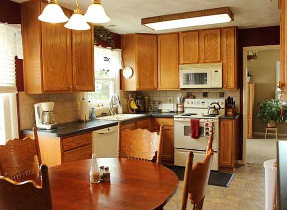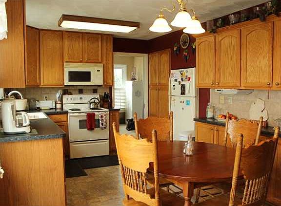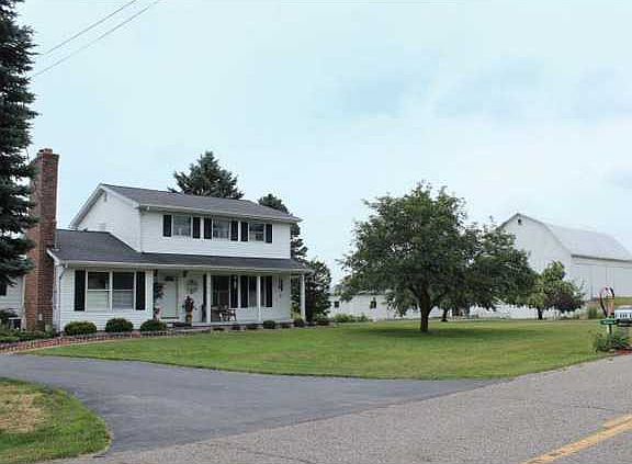 Country living on paved road with natural gas. Newer vinyl siding and several windows. Covered front porch to foyer with hardwood floors. Remodeled kitchen, roll out pantry drawers, new flooring, counters, sink and fixtures, and all stainless appliances in May of 2013. Walkout to 18 x 12 Trek deck. Formal dining room (now used for office)New carpet. Cozy family room with stone fireplace, lots of natural light and wall of built ins. Convenient first floor half bath and laundry that comes equipped with newer High Energy Efficient washer and dryer. Mudroom entrance off attached garage. Both the master bath and 2nd full bath have been updated. Whole house attic fan. Lower level has tiled floor recreation space with cupboards and sink, cold storage, office or den space and possible 4th bedroom with egress window. Apple orchard, plum and pear trees, and grape vines for homegrown produce 70 x 20 Equipment Shed with new siding Insulated, natural gas heated work shop Two story animal barn previously used for cattle, hogs, chickens and pheasants was primed and painted in 2012 and is currently rented for equipment storage at $200 year. Newly sealed blacktop circular drive, updated landscape.
