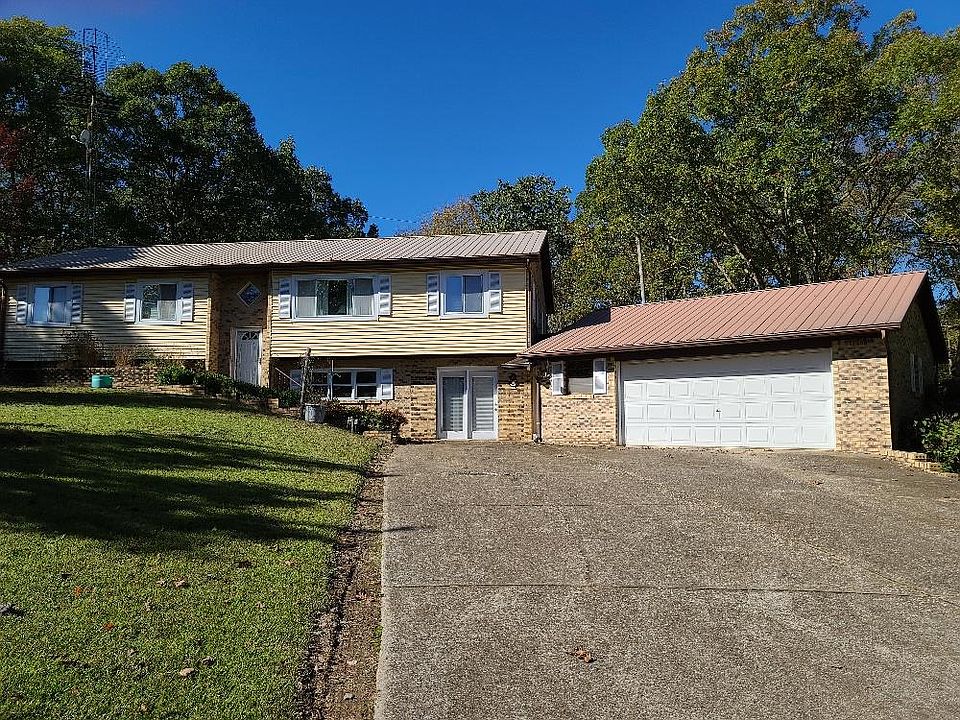 IF YOU HAVE BEEN LOOKING FOR OUT OF TOWN A LITTLE BIT ON 2 LOTS ""5"" BEDROOMS/2BATHS, ON THE WAY TO THE TENNESSEE RIVER-LOTS OF PRIVACY-DOUBLE 2 CAR GARAGE WITH WORK BENCHES/WALK THRU BREEZEWAY BETWEEN GARAGE AND HOUSE WITH DOORS ON EACH END-KITCHEN LOCATED ON ENTRANCE LEVEL WITH ADDITIONAL SQUARE FEET-GREAT HOBBY/OFFICE AREA WHEN ENTERING FROM GROUND LEVEL WITH CLOSET-LARGE OPEN AREA FOR LAUNDRY,FREEZERS,CRAFTS-LOTS OF DOUBLE CLOSETS-BATH ON THIS MAIN LEVEL AS WELL-BRICK STAIRWAY WITH FINISHED WOODEN STAIRS(VERY PRETTY)VERY LARGE LIVING AREA FRONT TO BACK ON UPPER LEVEL-HAS 3 BEDROOMS WITH JACK/JILL BATH AND ALSO ENTERED FROM HALLWAY- 2 BEDROOMS ON THE OTHER SIDE OF LIVING AREA