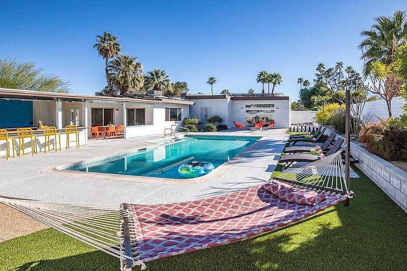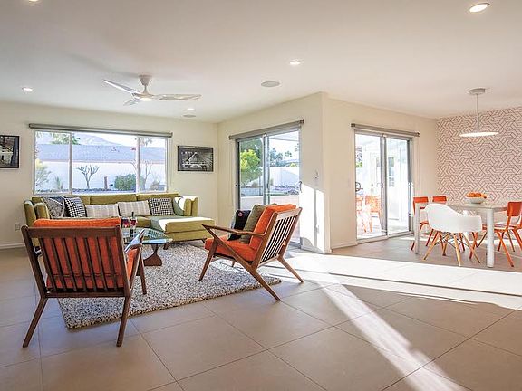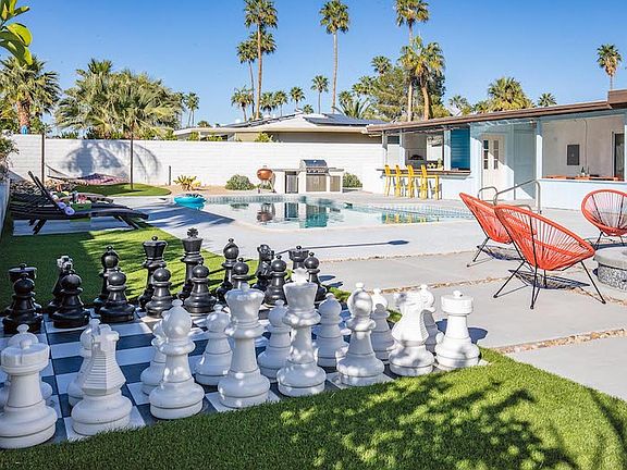 Available for: January $9215.00 February $9280.00 March $9987.00 The City Of Palm Springs City ID.# 4899 Dramatically reconceptualized, this one-of-a-kind home in desirable Vista Norte is an architectural standout chockfull of resort-style amenities. Interior appointments include built-in bar, walk-in pantry, lighted art niches and baseboards, clerestory windows and high-end materials and finishes. Outside is a multitude of distinct recreation and leisure areas, such as tiki bar, built-in barbecue, gas fire pit, covered rear patio outdoor for dining, outdoor shower, patios off three bedrooms, full size chess set and more. Utility charges will apply to reservations (electricity). Upon acceptance of the reservation you will be required to sign a Rental Agreement directly with the management company 365 Vacation Rentals The Palm Springs Vacation Rental Ordinance requires the following: All persons must be at least 25 years of age or accompanied by parent or legal guardian. The maximum number of guests shall not exceed posted limits. This includes ALL children AND infants. Outdoor music of any kind or excessive noise is not permitted at any time. No more than 1 car per bedroom is allowed per home. 2 car maximum. Failure to do so will result in fines being issued directly to the occupant of the home and you will forfeit your security deposit. Please refer to your rental agreement or ask for greater detail.