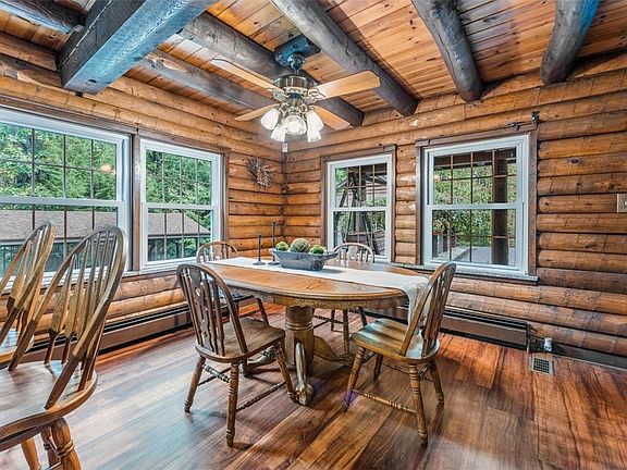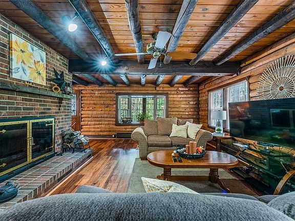 Are you longing for peace and quiet? Nestled amidst the tranquil beauty of Wilmington Township, resides this stunning two-story white pine log home that beckons you to embrace the serene lifestyle you've always desired. Step inside to be enchanted by the rustic charm of the oak country kitchen, boasting granite countertops and stainless-steel appliances, perfect for home-cooked meals and family get-togethers. As you wander through this rustic haven, your eyes will be drawn to the living room, where a magnificent floor-to-ceiling brick fireplace stands tall, inviting cozy evenings by the log-burning fire. Host game nights, or simply unwind in the main floor game room, overlooking the sprawling backyard landscape. Car enthusiasts and DIYers will rejoice at the prospect of not one but two garages on the property- measuring 35x22 and 25x14 for your hobbies and storage needs.