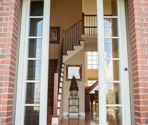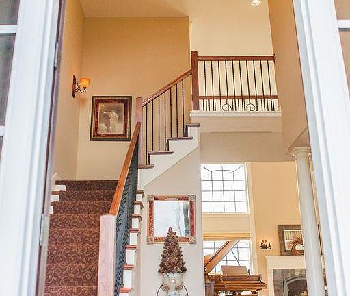 If you're into sunrises and sunsets look no further, this 5 bedroom with 4.5 bathrooms has amazing features throughout the home. Master suite offers adjoining study, large master closet, jetted tub and walk in shower. The entryway opens up to a Formal dining room and great room with floor to vaulted ceiling windows and fire place. Kitchen has granite top counter tops and custom island along with stainless steel appliances. On the second floor you will find 3 additional bedrooms. The basement offers 9 foot ceiling and plenty of room for the whole family to spread out in the media / family room with the fifth bedroom, bathroom location along with safe room. Over 500 square feet of storage also can be utilized for additional space. Owners over -sized the two car garage.