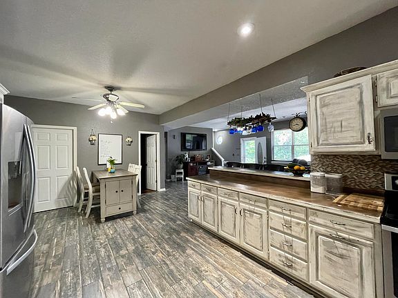 Beautiful, updated home with 3 bedrooms and 3 bathrooms sitting on 3+/- acres. This property has it all. Recently renovated with all new: HVAC, flooring, appliances, updated cabinets, countertops, doors, paint, bathroom appliances, lighting, and more. This home is approximately 2500 square feet and features a large master suite with an additional livingroom. You're sure to love the multiple outdoor entertainment areas. Boasting an above ground pool with a large wrap around deck, screened porch and campfire area perfect for making memories. Amazing views from the screened porch looking out over the creek and sunsets. Great location, awesome neighbors, good roads, within 15 minutes to town. Property also has a 20x40 metal shop that has an office and bathroom.