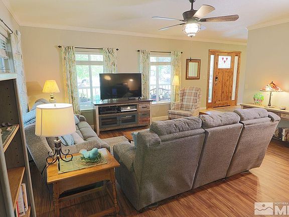 Pride of ownership shines in this Galena Country Estates home. The updated kitchen features include stainless steel gourmet dual oven with gas and electric, oversized sink, dishwasher and refrigerator. Luxury vinyl flooring compliments the warm, knotty pine floors in the entryway, kitchen and family room. New energy-efficient windows have been installed throughout the home. There is RV parking next to the 3 car tandem garage. The back gate opens for easy access to Whites Creek trail and park., Relax on either the front wrap-around or back covered Trex decks to enjoy the park-like lushly landscaped, .98 acre lot including apple and shade trees, raised garden beds, hot tub, patio dining as well as mountain and valley views. Prime location for dining, shopping, entertainment as well as being less than 30 min to skiing and Lake Tahoe. This home is truly pride of ownership and move in ready!!