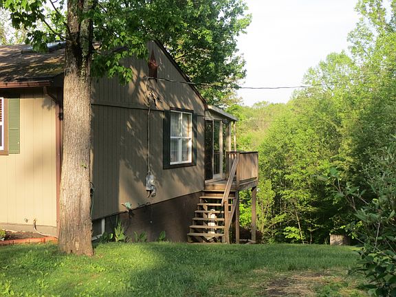 Hocking Hills getaway tucked into a ridge. Close to Ash Cave and Old Man's Cave, but away from tourist traffic. Central air, full walkout basement with extra buildings, garage and carport. Upstairs has 3-Seasons room and lower level has 4-Seasons room for extra enjoyment of nature. Separate building has half-bath and could be used as guest house or efficiency rental. Owners are offering a one-year Home Warranty. Trail and bench down the ridge overlook very large cave..