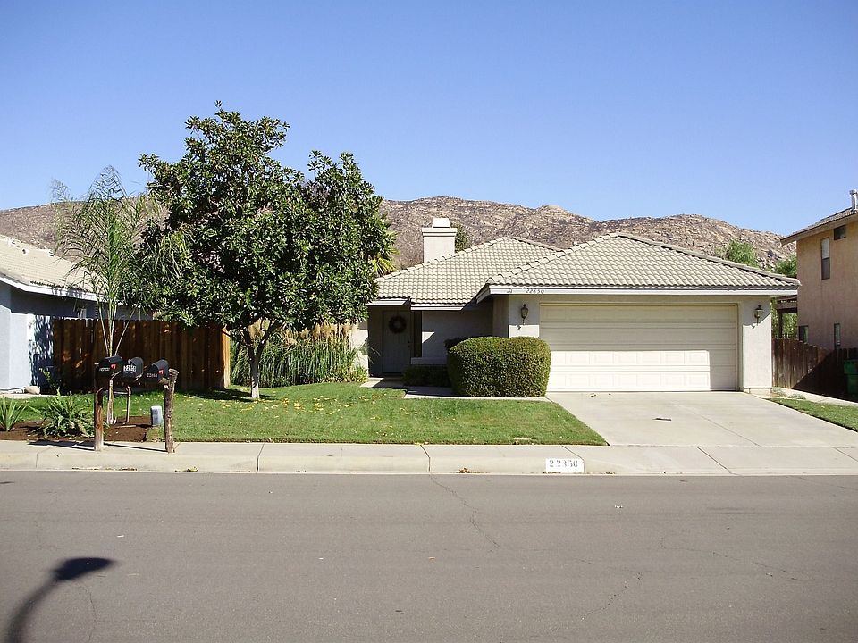 Location! Location! Lovely, single story home located in Hidden Springs, north of the 60 freeway. 3 bedrooms, one bedroom used as a office. 2 baths. Tile entry.Living room has a unique fireplace with beautiful mirror. Fireplace extends into the dining room, wood shutters in both rooms. Carpet throughout.Open kitchen, skylight, recessed lights, ceramic counter tops, moen facets, tile floor, microwave, dishwasher, stove and refrigerator.This home has many great features. Storage unit in backyard. Concrete patio slab extends across the back of the house. There are no homes in back of property. It has a Green Belt area that include a walking trail and horse trail for fun and adventure.Walking distance to Box Springs Mountain Park, middle school, Canyon Springs High School.Approximately 2 miles to elementary school, mall and shopping.Scenic view of the mountains.Easy access to freeway. Included in sale of property: Stove, Mirror over fireplace, refrigerator , washer and dryer.Property Sold AS-IS.