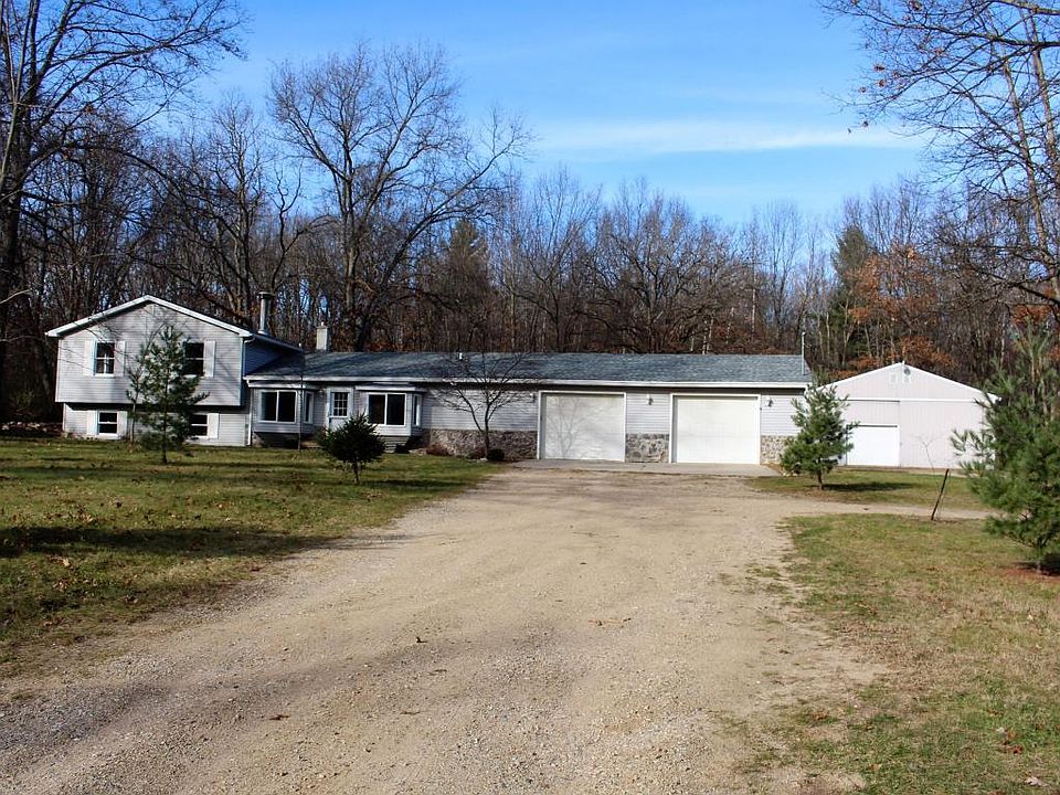 Large 5 bedroom 1.5 bath tri level on 10 beautiful-trailed-wooded acres. Extra large 24x36 attached garage plus 32X48 Pole barn insulated/half bath/office. Behind the barn is a chicken coop and dog run. There is approximately 1/2 acre fenced for horses. The home has been fully remodeled with new kitchen, fixtures, paint, and vinyl. The home also has a new 30 yr roof. Heat with propane or the outdoor wood burner complete with wood storage canopy.