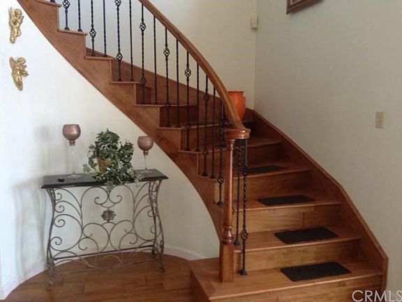 Extensive desert style landscaping make this upgraded home your place to relax. The beautiful, enclosed salt water pool and spa are surrounded by a beautiful deck. Just steps away, you will enjoy the built in BBQ and eating area, that are covered by trellises and surrounded by fully matured palms! The ample side yard offers all the privacy you crave, still offering room for a vegetable garden or dog run. The covered patio on the north side of the house offers a balcony with direct access from the pool to the master bedroom. Watch the sunset, the fireworks and the lake. There is also a large area at the north end of the property with untapped potential. Beautiful double pane glass doors lead you to the foyer, living, and dining rooms that feature white shutters and gorgeous wood floors. Direct access from the DR to the beautiful kitchen that sports granite counters, stainless steel and black appliances surrounded by a travertine back-splash. There are glass and wood cabinets above the breakfast counter next to the family room. A large window allows you to enjoy the view from the eating area off the kitchen. Wood stairs with a wrought iron railing lead the way to the upstairs hall that connect all bedrooms all boasting views of the mountain and lake.