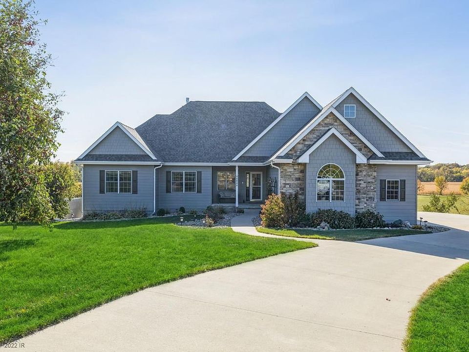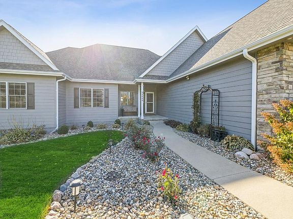 Don't wait to come view this stunning ranch home located on a golf course in Adel. Beautiful vaulted ceilings professionally painted Oct 2022. Gas fireplace has a pop of color. The kitchen has plenty of counter space & a newer dishwasher. Off of the kitchen you will find a large half bath & laundry room. Laundry room has a spacious shelf with counter & deep sink. Open attached deck with Trex decking & new railing. This home sits on a little over an acre & backs to the driving range. The main level also features 3 bedrooms & 2 full bathrooms. The master bedroom presents an oversized master closet & bathroom. Master shower is heated. Large family room on LL with wet bar. Wet bar includes sink, microwave, & refrigerator. Another fireplace & benches by windows. Walk out basement with a screened in porch done in 2022. String lights will stay. Another bedroom on LL with a nonconforming room that sellers use as workout room. There is a movie theater room with speakers, projector, & risers. There is also a loft in the garage that could be used for storage or finished. Spacious 3 car garage with work bench. Central vac has a car attachment in garage. Circle drive with standard basketball court. Exterior features include 150 ft rock wall, firepit, gazebo, & garden. Updated roof, gutters, windows across back of home, & exterior paint in 2019. Propane tank was fenced in per requirement in 2020. Irrigation system. Ring door bell & exterior motion detector lights.