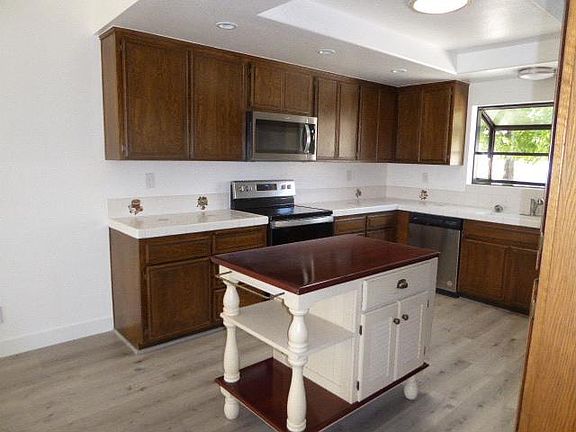 This single level home is located on the golf course. This home has lovely golf course and fairway views from the back yard. Views of Mt. San Jacinto too which is snow capped in the winter time. This home has been upgraded and is turnkey. Enter the double doors to a beautiful entryway and a view immediately as you look toward the back yard. Living room has wood-burning stove and lovely stone flooring. The remainder of the home has new plank vinyl flooring. The dining area is a separate room off the kitchen and both open to the view of the golf course. Three sliders at the back of the home provide an amazing view for you to enjoy year round. Lovely kitchen upgrades with a new range, new microwave, and new dishwasher. A garden window allows you to enjoy any herbs you want to grow or just enjoy the sunlight. There is an island cart for your use. Recessed LED lighting throughout the home. New light fixtures throughout. Ceiling fans in each bedroom and the living area. The master bedroom has it's own a/c and thermostat. The master bedroom is oversized with plantation shutters to open and admire the view. Exit the slider to the back covered patio that runs the entire width of this home. The master has mirrored closet doors that open to a left side and right side for hanging clothes and a middle section with shelving for other articles. The master bathroom has dual sinks with lots of counter space, a step in shower and sky tube to bring in the natural light. There are 5 sky tubes throughout this home which bring in additional natural light. These owners thought of everything. Two additional bedrooms are spacious with ample closet space as well. This home also includes a dog run for your furry family member. The two car garage has direct access to the house and provided washer and dryer. There is also a golf cart garage and a work bench. Canyon Lake is a unique city and community. One reason it is unique is because of 20 parks and beaches spread around the community with playground equipment, volleyball nets, basketball courts, dedicated swimming areas, and Frisbee golf. It has numerous other amenities to check out. Close to everything. small pets allowed