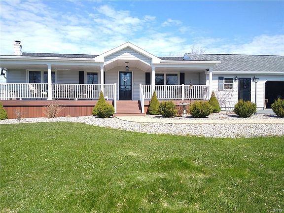 Outstanding 3 bedroom, 2 bath ranch home situated on 5.26 acres of gorgeous private land. Prime location in South Jefferson School District, with the benefit of low Town of Watertown taxes and quick access to Fort Drum or I-81. Amazing front porch to welcome your guests and relax in the shade! Warm & inviting interior featuring a gas fireplace, high ceilings, fresh paint, a neutral palate, many recent upgrades and updates throughout. The chef's kitchen will not disappoint - ample cabinets and counter space, high quality appliances, pantry, eat -in area and a beautiful adjacent dining room. Gorgeous master suite, lovely bathroom and a HUGE walk in closet. Additional bonus spaces, laundry, workshop and endless storage in the partially finished basement. Attached 2 car garage, sun deck, awesome fire pit area, paved driveway, storage barn and EVEN your own tree stand out back! This home is the complete package, call today.