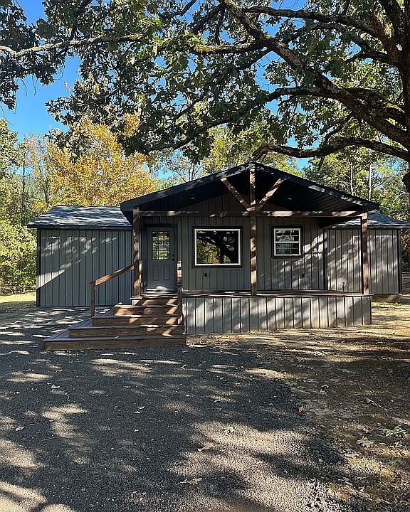 Newly remodeled open concept two bedroom one bath home, pantry, Cedar line closets. Laminate flooring. Granite cabinet tops. Large 55 inch TV. Double pane argon gas windows. New stainless steel appliances (cook stove, refrigerator, dishwasher, microwave). Maintenance, free, exterior. Central heat and air. LP Gas outlets for heating stove and cook stove. Large porch. Large oak shade trees surrounding the home.