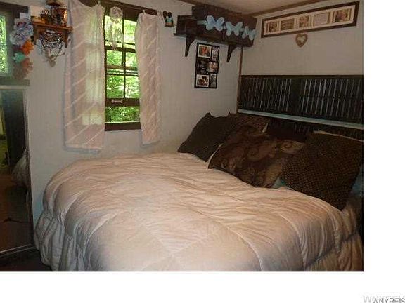 Paradise Found! Year round 1 bedroom Cabin, kitchen opens to living room, bathroom with a stall shower and glass block window, electric heat, wrap around deck views treed 9+ acre setting with pond, 30' x 24' detached garage with concrete floor, electric, block windows, floor drain and 10' door. Property borders a creek. ** Property is being shown by appointment only-please do not enter the driveway or walk the land without a scheduled appointment **