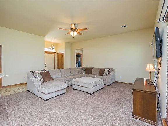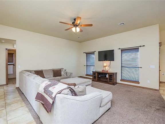 Starry nights and hilltop views from this 1,925 sf home on 1.3 acres. Welcoming front porch, spacious foyer, cool tile in kitchen, dining, home office, hallways. Open concept livingroom, stainless & granite kitchen, deep sink, breakfast bar overlooks living room. Large dining room, space for farmhouse table and hutch. Adorable glass door on walk-in pantry. Master BR is large, bath has tall granite double vanities, step-in shower has 1-piece surround for easy maintenance. Chin deep jetted tub for 2. Bedrooms are spacious, have wall-to-wall closets. 4th BR/home office/hobby room is tiled. Laundry room is spacious, has folding and hanging space. Oil-rubbed hardware throughout home. Covered patio faces east offering shade from afternoon sun, great space to unwind, enjoy the forever views. Side load garage is facing south making the garage door easier to open during inclement weather and keeps winter winds from cooling the house. 1.33 acres of peace and quiet, open spaces and room to relax.