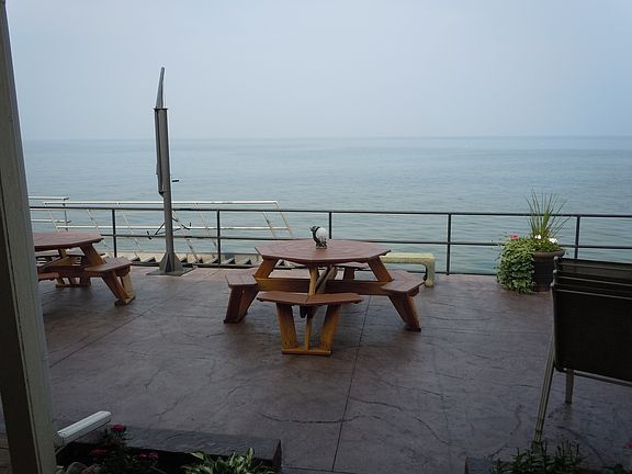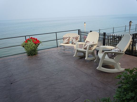 Exquisitely Remodeled Waterfront Property with 60' frontage. Granite Kitchen & Great Rm Overlooking Lake Ontario. Entertain inside or outside at the Covered Waterfront Patio Bar. 2 Awning Covered Balconies, Fenced Yard, Prof. Landscaped. Magnificent Floors, 2 zone 2 unit Elec. Heat. Roof 10 yrs.