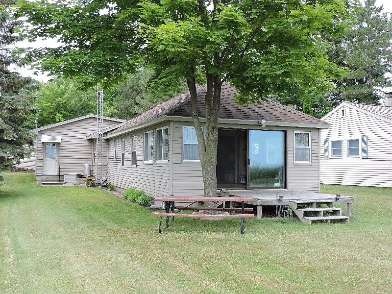 "Up North Get-A-Way Cabin on the Saginaw Bay" Perfect for the year round fisherman---this 1 bedroom home has a lot to offer with its open floor plan, kitchen with bar area, 3-season sunroom overlooking the Bay, attached 1 1/2 car garage, steel seawall, plus 10x12 storage shed.