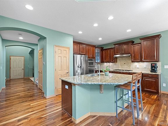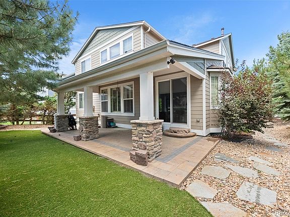 Beautiful two story home in the Meadows of Castle Rock! This home features a three bedrooms and a loft upstairs and additional bedroom and full bath in the basement. The main level has a office area, family room and kitchen with a spacious area for dining. Kitchen features upgraded granite counter tops, pantry, gas cooktop, microwave, oven and tall cabinets for plenty of space for your kitchen needs. Laundry conveniently upstairs with a deep sink. Primary five piece bathroom has a jetted tub with tile flooring and countertops. Outside in the back of home has a private covered patio with skylights and a gas line for your gas grill. Mature landscaping and artificial turf makes the yard easily maintained. **Plantation shutters, water filtration system, 50 gal water heater, humidifier, radon system, sump pump**.