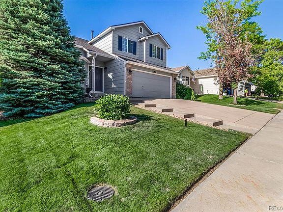 Welcome to this enchanting 2-story home nestled in the vibrant Saddle Rock Ridge neighborhood. As you approach, you are greeted by a beautifully manicured landscape and striking stone accents adorning the facade. Step inside and discover a spacious interior bathed in natural light, featuring vaulted ceilings that enhance the sense of openness. The floors, a tasteful blend of plush carpeting and wood-look finishes, complement the neutral color palette, creating a warm and inviting atmosphere. The living room serves as the perfect spot for relaxation and social gatherings. The heart of the home is the great room, where a charming gas fireplace becomes a focal point, ideal for chilly evenings. Culinary enthusiasts will delight in the kitchen, equipped with modern stainless steel appliances, ample white cabinetry with crown molding, granite counters, and a center island with a breakfast bar. Recessed lighting and a well-sized pantry add both functionality and style to this chef’s paradise. Retire to the serene main bedroom, a personal retreat featuring a private bathroom and a spacious walk-in closet. The additional loft space upstairs offers flexibility, perfect for a media center or a quiet reading nook. The basement provides extensive space, ready to be transformed into an exercise room or an entertainment hub, tailor-made for fun. Step outside to the backyard, where a patio area invites you to unwind and enjoy the lush grass and a designated play area, ideal for endless outdoor activities. This gem is waiting to be yours. Embrace the opportunity to create lasting memories in this delightful residence, a true sanctuary for those who appreciate beauty and tranquility. Take a tour today!