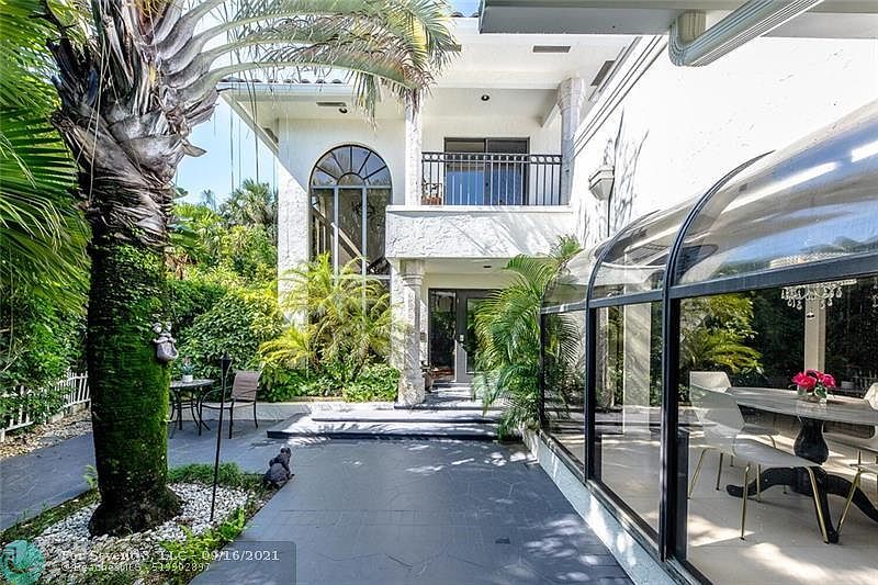 Don't miss this absolutely stunning home with a tropical courtyard entry and direct golf course location (non-mandatory country club)! This end unit provides an abundance of natural light through dramatic windows & glass doors! Extensive upgrades include: hurricane impact front door; brand new 2021 roof; freshly painted interior & exterior; gorgeous kitchen w/wood cabinets, granite countertops/backsplash, stainless steel appliances; all new wood flooring upstairs; renovated bathrooms; beautiful stonework on fireplace & bar area; custom closets; designer light fixtures; newer washer/dryer; newly tiled upstairs deck & back patio area; screen-enclosed, heated pool (newer pump & heater)! One bedroom/full bathroom downstairs (bedroom currently open to living room). Can be sold fully furnished.