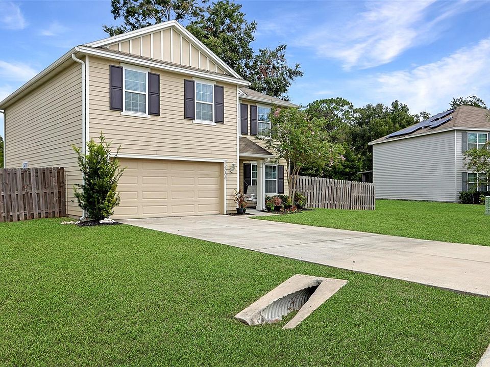 This jewel in High Springs offers 4 bedrooms, and 2 1/2baths. As you enter the home, to the right you will find a separate room that can be used as a sitting room, home office or whatever you wish! Downstairs is living space!! Featuring no carpeting (LifeProof LVP flooring), a large kitchen and dining area leading to a spacious living area. Perfect for entertaining. Don't miss the walk-in pantry in the kitchen! And additional storage underneath the stairs and 1/2 bath, too. Upstairs you will find 4 spacious bedrooms and 2 baths. The primary bedroom is fantastic - large enough for a sitting area and a king size bed, to make this truly a retreat! Large walk-in closet, and the ensuite bathroom is big enough for everyone to get ready for the day at the same time! Did I mention the upstairs laundry room - don't worry about carrying dirty and clean cloths up and down the stairs - it is so convenient! Add the oversized two-car garage and an ample yard. The backyard space extends down both sides of the house. Also, no neighbors in the rear of the home, lending to privacy and lovely nights relaxing with friends, family or by yourself enjoying the evening on the large 445' concrete patio - room enough for outdoor dining & living room areas! The home has gutters, privacy fenced yard (with gates on either side of the front). One of the current owner's favorite parts of the neighborhood is the cut through to the High Springs Community School - just a 5-minute walk from the house! High Springs has a quaint main street with dining and shops, about 12 miles from the big stores and activity of Gainesville. Although, an easy commute to Gainesville, the University of Florida, and Shands Hospital., High Springs still maintains a cozy hometown feeling and is in close proximity to several springs for outdoor fun.