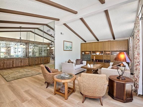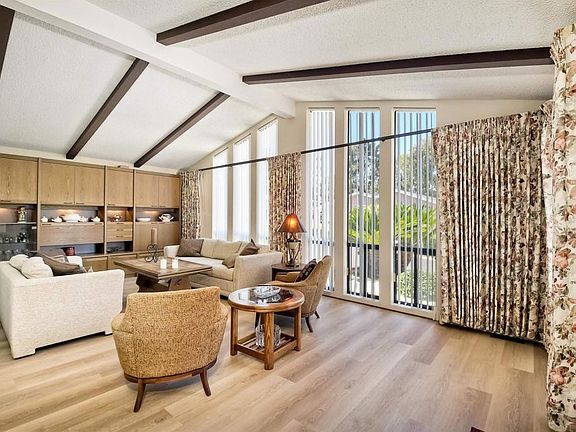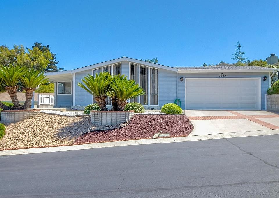 Beautiful manufactured home in age-restricted 55+ Camino Hills gated neighborhood. These rarely come on the market! Single level 2 br/2 ba with formal living room, formal dining room and separate family room with romantic fireplace. All living areas have custom built-ins. New hardwood flooring throughout. New tall baseboards throughout. Remodeled primary bathroom with separate tub and shower and separate vanities. Huge walk-in closet in primary bedroom. Oversized laundry room with built-in desk and door leading to side yard and patios. Central air. Large well-landscaped yard with great privacy. Covered patio plus huge patio space perfect for entertaining. One of the few homes in the neighborhood with a 2 car garage. Great interior location with no road noise. All rooms are oversized and this home has been meticulously maintained.