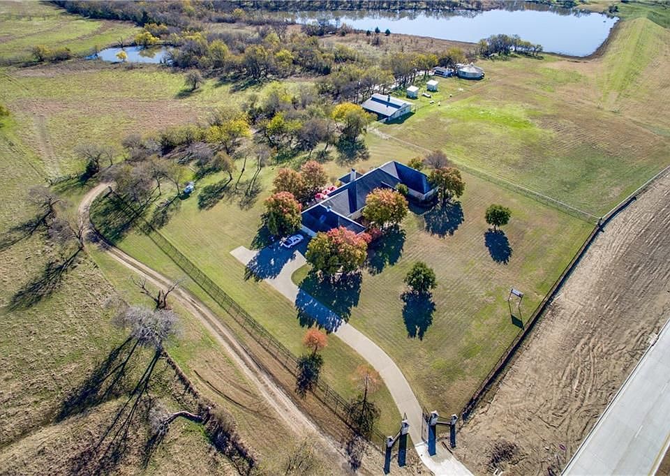 Spectacular hilltop views from this gated custom 1 owner home! Main house has basement for storm shelter & TX size game rm above oversized 3 car gar. Looking for a weekend escape with city convenience a few minutes away. Great investment oppty w approx. 1680 of road frontage. Separate guest house is approx. 1600 sq. ft. w 2 bd, 2 bath, kit, & living. Barn w 4 stalls, tack rm, & wash area;2 loafing sheds;property has access to huge pond! Ag Exempt