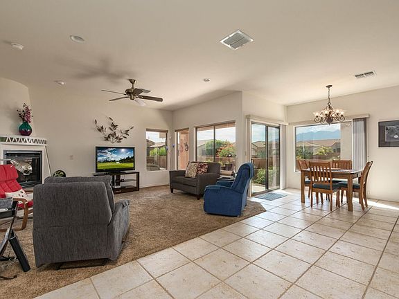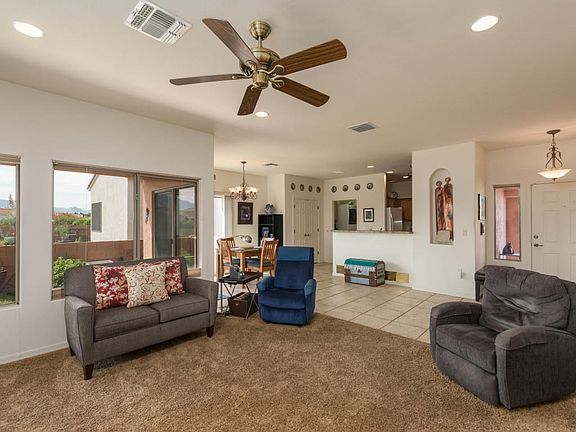 Welcome to this beautiful open Maverick floorplan that comes complete with all your major appliances including refrigerator and full-sized stacked washer/dryer. This home offers tile in the traffic areas and newer carpet in both bedrooms and the great room. Cozy up next to the Kiva fireplace as you watch the sunset on the beautiful mountains that look like they are located in your backyard. Fresh exterior paint, California closet in the master, extra storage in the laundry, garage, and pullout drawers in the kitchen and bathrooms offer plenty of storage for your treasures. This beauty is move in ready with too many upgrades to list. This home is perfect for full-time living or seasonally with the nicely landscaped rear and front yards. Welcome home!