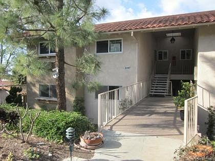 This is a spacious 2 bedroom unit with a fireplace in living room. Nice quiet location. 8 steps going down into unit. Scraped ceilings. Nice carpet in livingroom. Tile in kitchen and bathrooms. This is a castilla floor plan. Carport number is 2191#2 Buyer to pay $1500 Facilities Fee