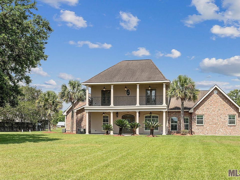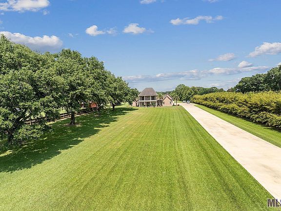 Stunning, full of grandeur! Wrought iron fencing with Brick columns. Living room ceilings open to second level with upper windows filling the main areas with natural light! Open foyer and formal dining with views of iron detailed banisters. Butlers pantry pass through to gourmet kitchen featuring island with breakfast bar and sink. 6 burner gas stove with grill, corner sink with a view, walk in pantry with custom doors, slab granite counter tops and more! Two bedrooms, 1 full bath, theatre room, office, master suite, 2 half baths, and beauty shop downstairs. Three bedrooms with balconies and two full baths upstairs. Massive game room over garage with full bath and closet. Master suite is divine with private sitting room currently being used as an office but can also be used as a nursery. Escape to the master bath with two walk in closets, separate vanities, walk in shower, and jetted tub! Every finish is top of the line: cabinetry has custom antique finish, wood and glazed marble tile flooring, marble counter tops,...! Full 4 car garage with storage room, intercom system, advanced security system, surround sound inside and out, storage shed, and playhouse on 9.9Acres. Beautiful mature Live Oaks on front side of property. Spacious living! Country close to the city!