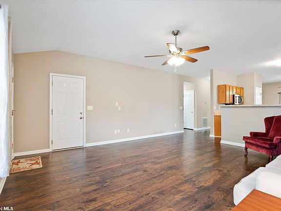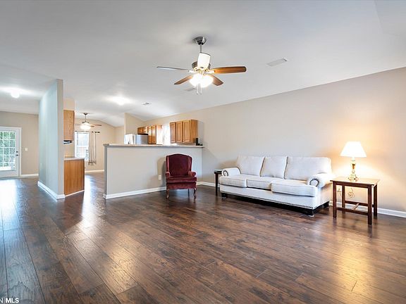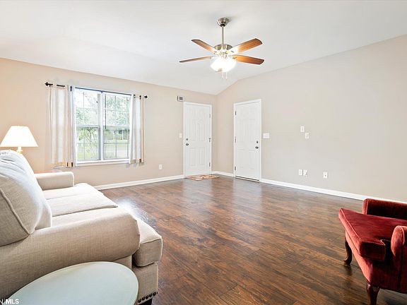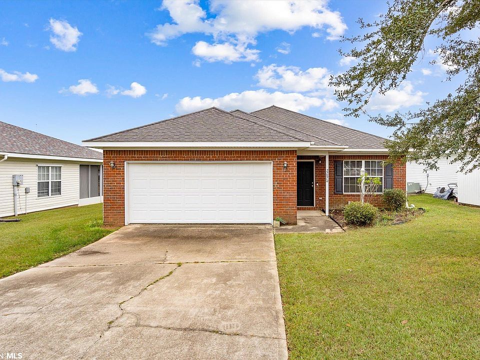 Three bedroom 2 bathroom home with a wonderful split bedroom floor plan in a great neighborhood. New flooring throughout, which means no carpet and all stainless steel appliances convey! Ac was replaced in 2020. No damage from Hurricane Sally! This home is ready for new owners and would make a great long term rental investment property. The primary suite has a large closet and a tray ceiling. There is a screened in porch that is perfect for morning coffee or watching the sunset in the evening. Home has a 2 car garage. Leisure lakes features a community clubhouse, pool, and large lake. Dues are only $420 per year for all of this.