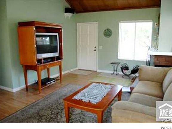 SINGLE STORY!! Enter the spacious livingroom with high cathederal ceilings and cozy fireplace. Large open family kitchen with breakfast bar. Travertine Floors and counters in kitchen and bathroom. Beautiful laminate flooring in livingroom. Good size private patio area. 2 Car Attached Garage with Direct Access. Enjoy nearby Association Lake, Pool,Spa,Clubhouse,BBQ area and more! Great location in the north end of Laguna Hills close to just about everything including an easy 8.9 mile ride to the sands of Laguna Beach! Lake Forest Drive has been extended to Laguna Canyon Road.