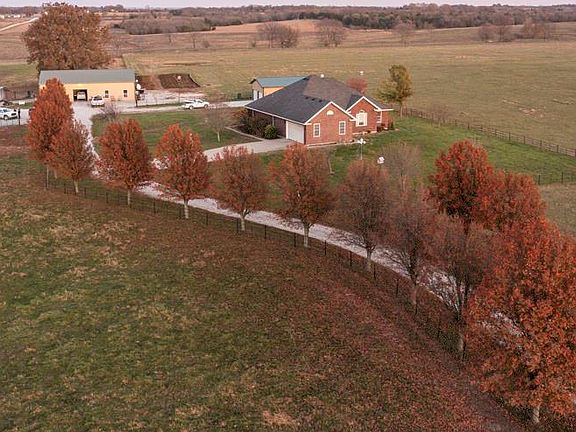 If you are in the market for a large home in the country, in a low traveled area, with 9 plus acres to roam or run horses and cattle, and just 1 mile off blacktop, look no further! As you enter into the custom entrance, you drive down a gorgeous tree lined gravel driveway, leading to a beautiful large brick home. The 4300 plus square foot home built in 2003 sits on a manicured 9 plus acres that is fenced. Inside the home you will find solid oak doors, oak cabinets, oak trim and corian countertops throughout, and you will notice its been meticulously taken care of. The main floor holds a large great room for family gatherings, a roomy kitchen with dining area, 3 bedrooms including the master and 2 bathrooms. The master bedroom suite is spacious with vaulted ceilings and includes a master bathroom with a whirlpool bathtub, standup shower, and a walk-in closet. A sunroom leads to a large stamped concrete patio for enjoying some fresh air. A staircase will lead you to a finished basement that includes a large family room, 2 spacious bedrooms, a bathroom, and a big concrete lined storage closet. The home includes a 2-car garage along with another newer 24x36 detached shop that includes a concrete floor and electricity to comfortable work in or extra parking. This well-maintained home on country acreage is ready for your large family gatherings and livestock!