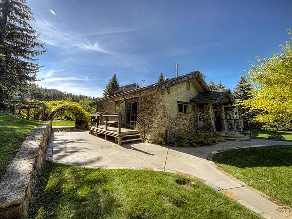 One of the most exceptional properties located along Rapid Creek! This one of a kind property with a storybook setting has over 5,000 sq. ft. of living space with a custom designed floor plan! The covered entryway with the gingerbread style shake roof provides an enchanting feel the moment you walk through the front door. As you enter the front door you will be amazed by the great room with 20 ft. plus vaulted ceilings featuring heated floors and floor to ceiling windows with views of the private backyard, canyon walls and Rapid Creek. The formal dining room with a slate fireplace and the kitchen with Viking appliances, whitewashed oak cabinets, breakfast bar, granite countertops are located nearby providing a great entertainment setting for your guests! The main floor guest bedroom is located near the kitchen with views of the backyard and has a full bath with laundry room nearby. Adjoining the formal dining room is the hearth